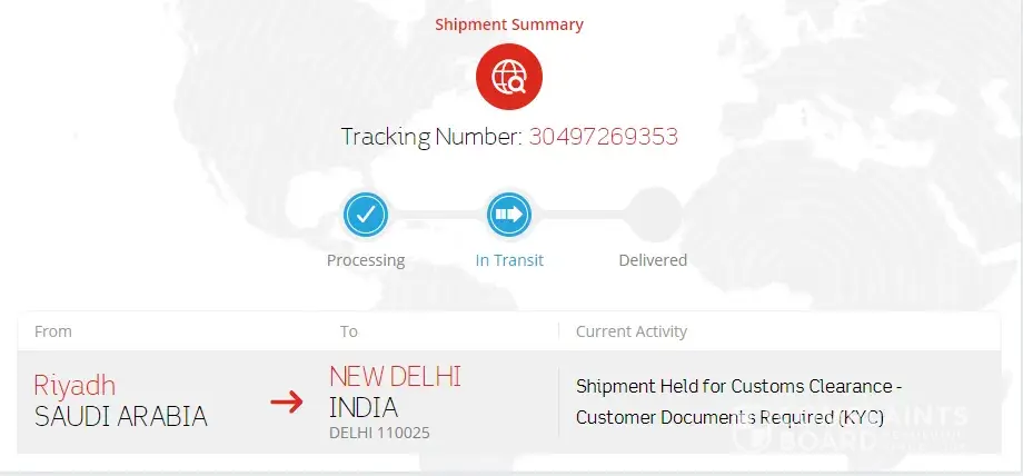 I book one shipment bearing no [protected] from Riyadh, KSA to New Delhi, INDIA on 27 March 2019.
