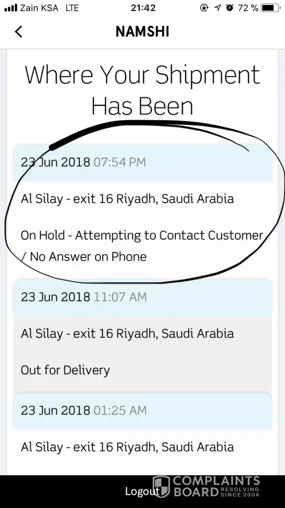 I ordered items from namshi dated june 12 and june 20 with shipping and tracking number of sa668983835 ([protected]) and sa667392478 ([protected]) respectively. I received an email from namshi that the product was already on its way and tracked my order that it had arrived in riyadh, so I contacted aramex to arrange the delivery date on june 27 for the reason that I won‘t be around on the shipping address on the succeeding days. Everything was set and I am confident that aramex understood every instructions that I gave. So here‘s what happened today. At noontime, I received a call from aramex‘s delivery guy asking for my location because my shipment was with them ready to be delivered. So I sent my location. I waited from noon until past 6 for them to call me but what happened was the delivery guy called me informing me that he‘s location is far from my place and he won‘t be able to deliver the items today instead it will be resched for tomorrow. So I explained to him that I already informed aramex thru the hotline that I prefer the items to be delivered on 27th of june because of the reason I mentioned earlier and he said ok! Then evrything was fine until I got curious and started tracking my order. I found out that my first order which I made last june 12 was still under processing at operations facility and the second order which was made last june 20 was sent out of delivery but then was kept on hold because of the reason that I wasn‘t answering my phone! How come I did not answered my phone well in fact I just spoke to that delivery guy from aramex?! And how come the order I made last june 12 was still processing at operations facility?!?! The underprocessing and the delayed thing were fine with me I won‘t make a big fuss about it. The problem was the comment whem I tracked my order was a big fat lie! And it irritates every nerve of me! So I hope that aramex will be able to fix this issue. Send a credible delivery guy and not a lying one to deliver every item to their respected customers. And I do hope that someone can help me to solve this issue and send this complain to the concern company.