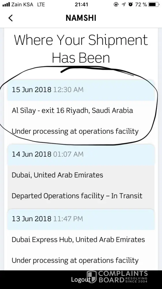 I am waiting my shipment no. [protected] still.in jeddah office in Saudi Arabia claimed total of 3 complaints with no support .