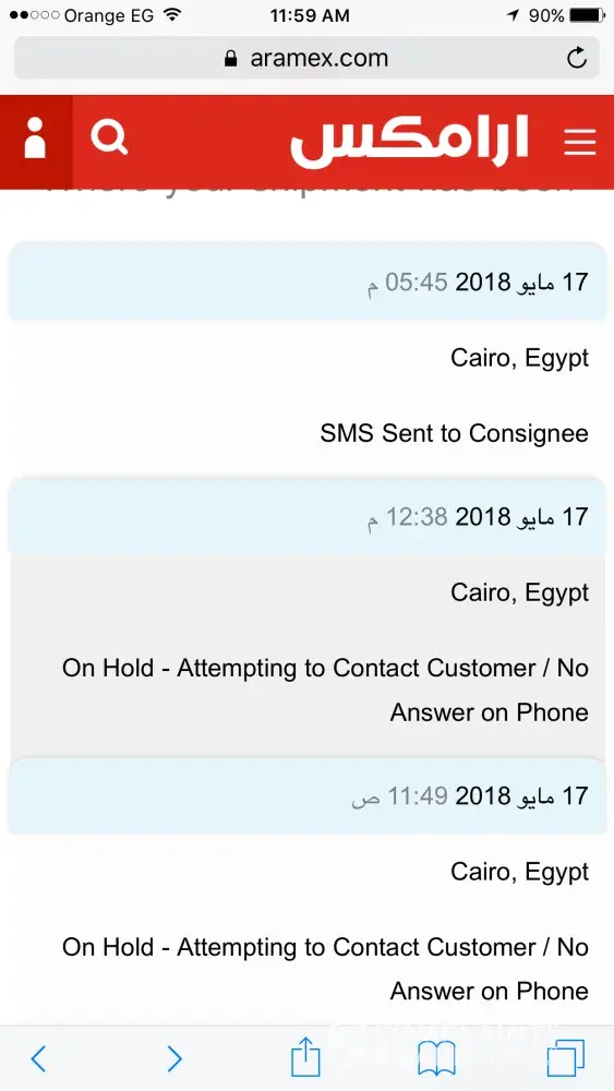 7. 11 May - Aramex app still shows "Held in customs - awaiting customer Instructions". phoned Aramex again - spoke to Aramex customer representative who cannot respond to why the reason is still for my action. She then told me that the matter is escalated and it will be released today and delivered on Monday as no deliveries are made over weekends.