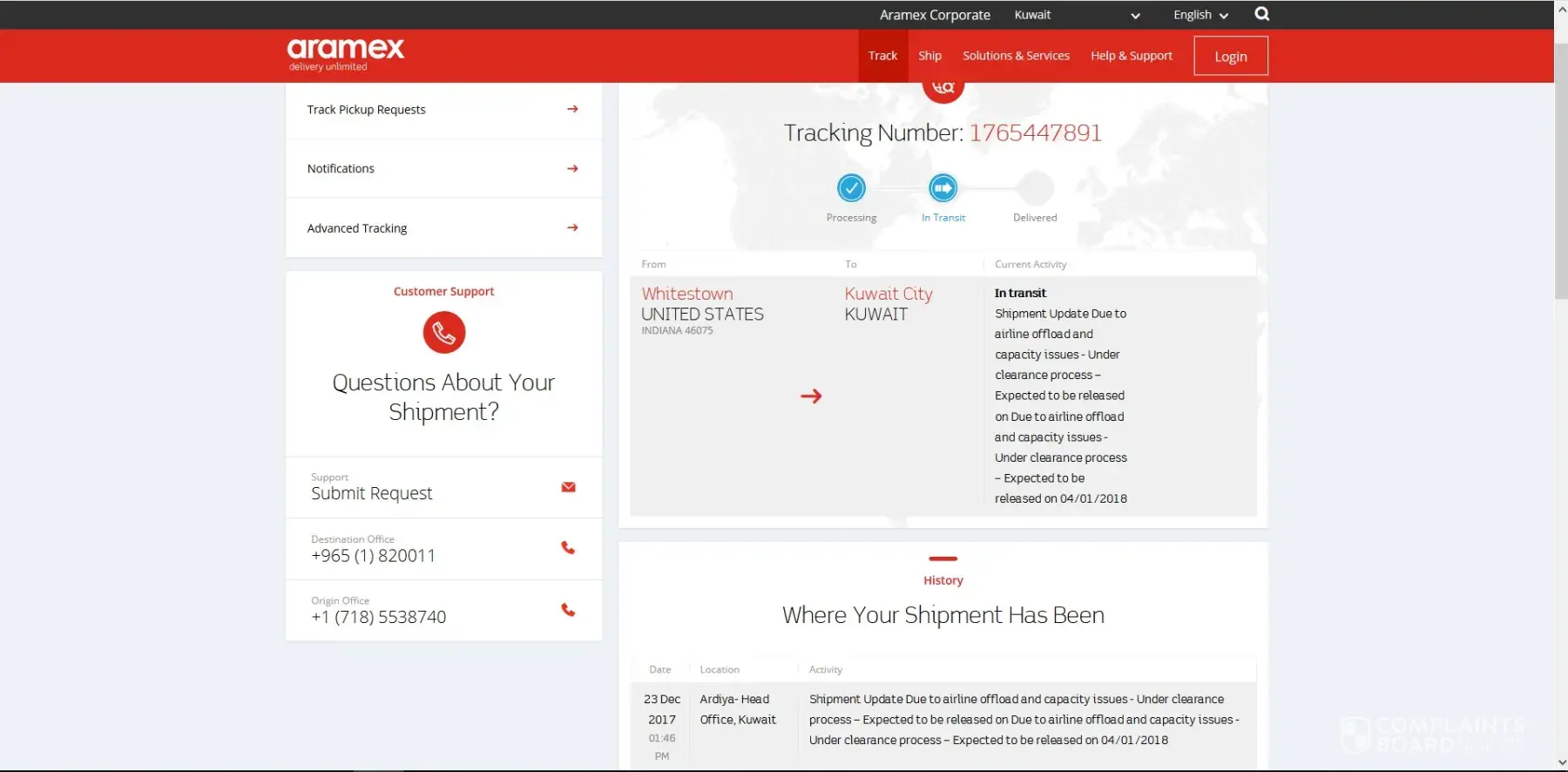 • I made an order on 09 Dec. 2017 from Jumia, my shipment has been received in aramex facility(operation office) in new Cairo on 11 Dec 2017 as shown by Aramex app.