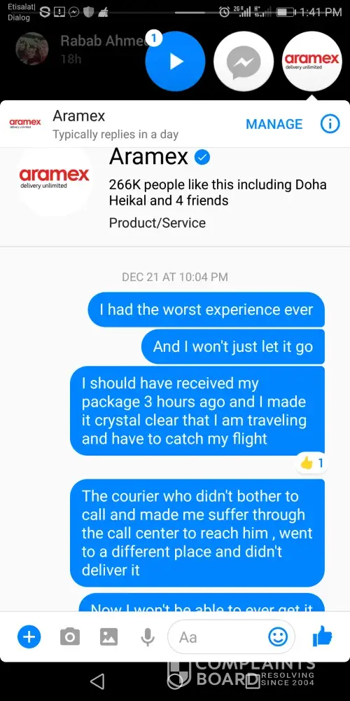 i placed an order using shopandship operated by Aramex, It was delivered after 4 days to their store and after i got a massage that the courier is on his way. i tried to explain the address but he kept ignoring my calls and hand over the phone to his friends with no success of delivering my package. i called the other day and i complained stating that he didn't want to even google my location which is pretty well know compound in Dubai i was promised to be delivered to my work place as i mentioned i leave my work at 5, surprisingly he came after 5 i told him i left so the next day which is today a guy came with a very UNACCEPTABLE RUDE ATTITUDE didn't want to even move his car for a few meters to deliver the package, and when he came i didn't have change he simply raised his voice throw my package in his car and left without waiting for me a few minutes to get change from my office and when i told him you will come back he answered if i want to i will come in my convenient time. i am really surprised what kind of people you are hiring and this considered the worst experience i had with aramex. i request an investigation and i am raising a complain for what just happened. Location Dubai Shipment number: [protected]