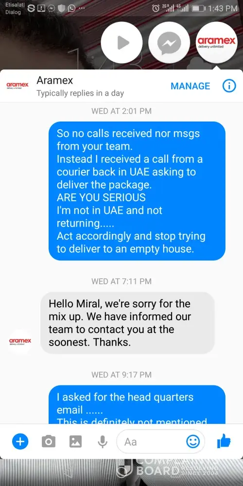 This is sooo un professional! I think aramex doesn't care about loosing customers at all!