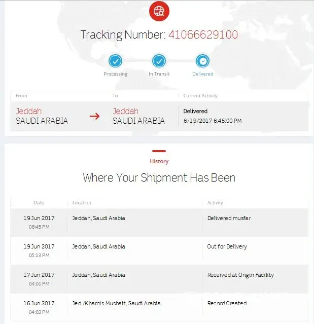 But unfortunately your service always fails to deliver our shipment on time. Attached the screen shot for your sake. From this you can see you people kept our shipment for 2 whole days at your Jeddah office. Your delivery boy called our staff at 6.45 PM on 19 Jun to deliver but he couldn't receive as we are not working at night night and you delivered on 20 Jun 2017 morning only. But the tracking report shows that it is delivered by 19 Jun evening.