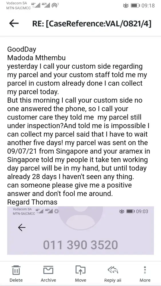 I'm really disappointed with Aramex services I find it very unprofessional of you because customers shouldn't be treated like that.