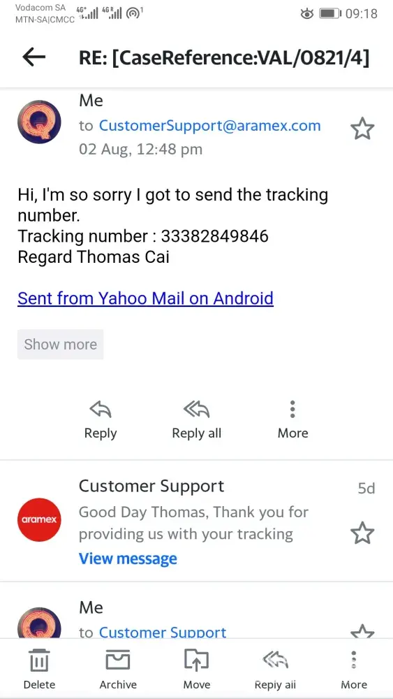 Aramex Shipment: [protected] [CaseReference:BOM/0721/38133]