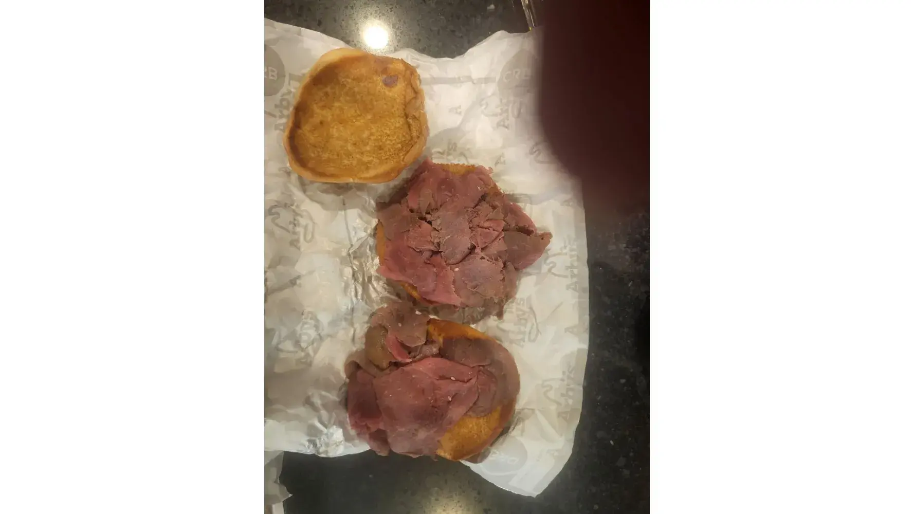 Roast beef sandwiches not done and cold.