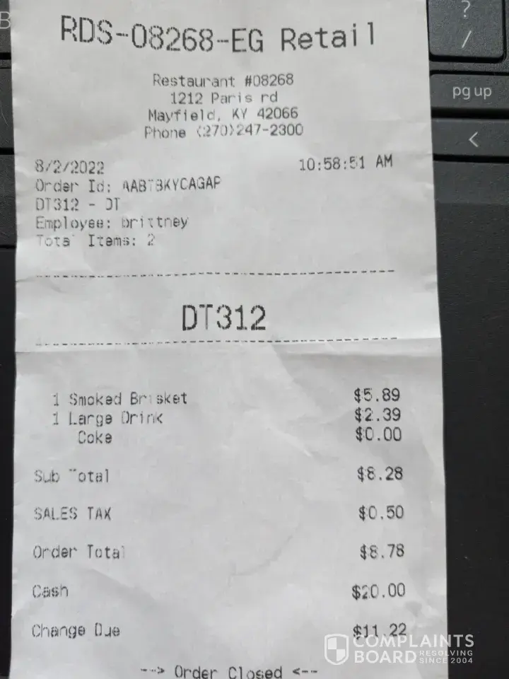Desired outcome: a refund of the 10.91 I payed and a apology, and that these people get training on how to handle the return of wrong food. I would like a response. I have photos of food and slip of whoever food this is, upon request
