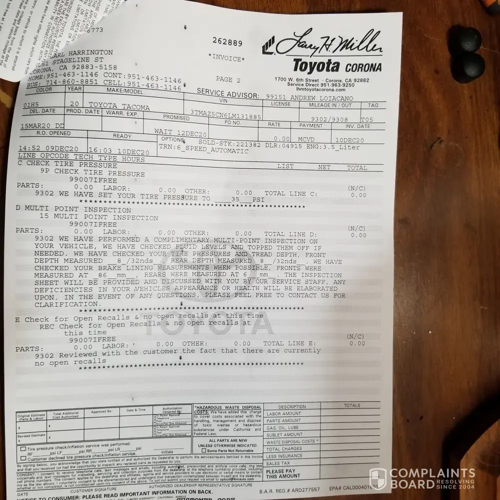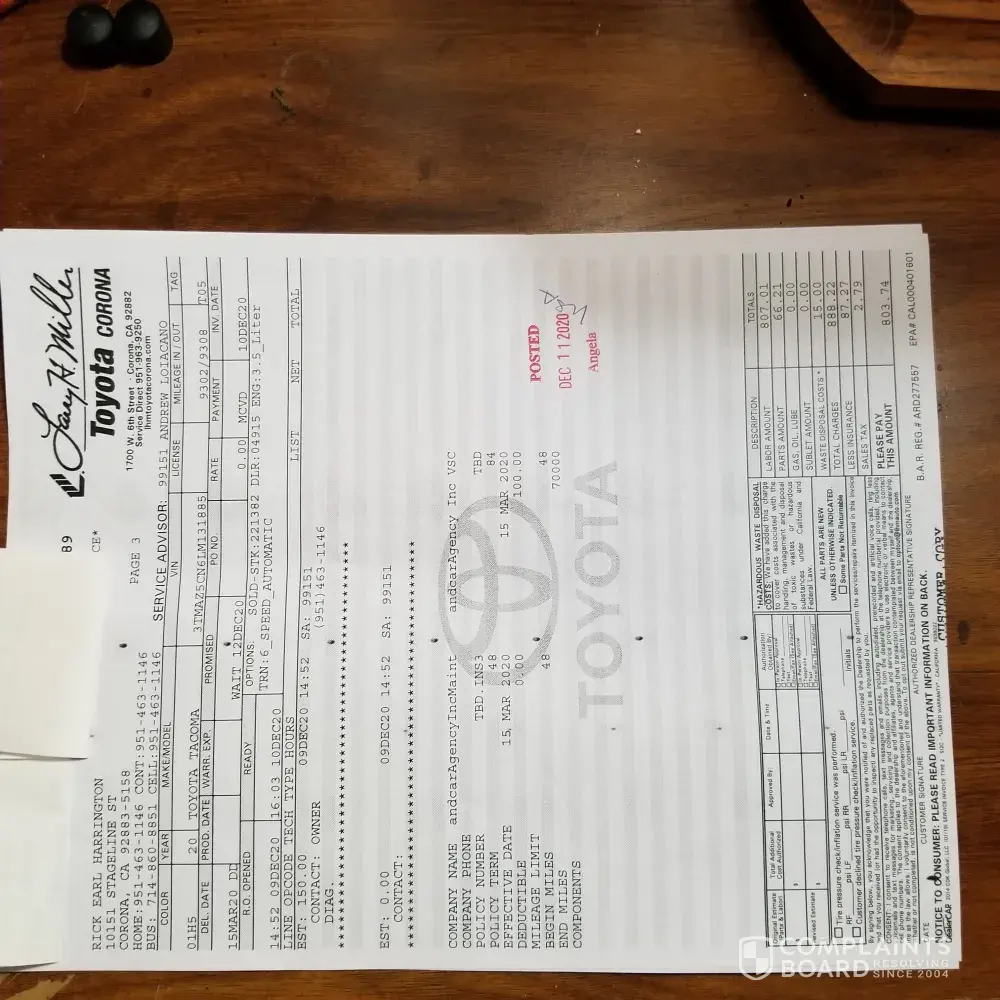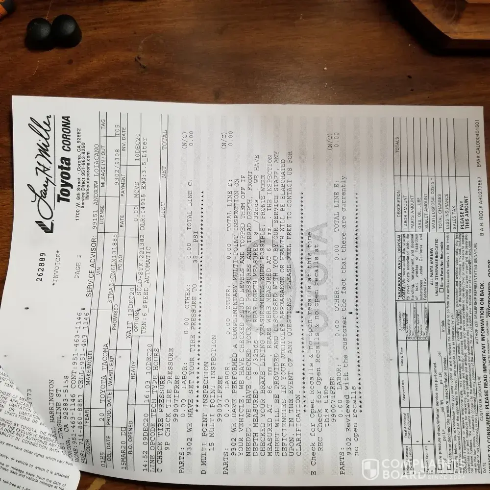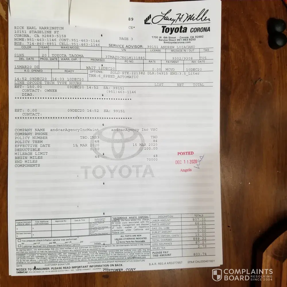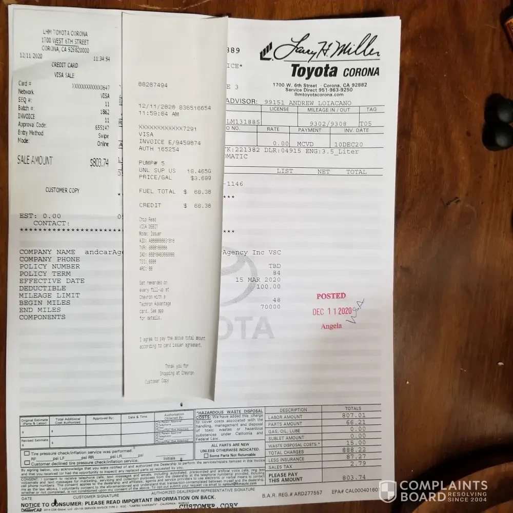 I have a 2020 Toyota Tacoma which I filled up with unleaded gas at an Arco gas station. It was not gas or properly mixed gas, my Truck died as soon as the old gas ran out. It cost me $900.00 dollars to take off the tank and flush the lines, and put new gas not at Arco. The chemical at pump #2 damaged my gas lines on the outside plus I was stuck for 6 hours on the road waiting for a tow truck. I have not heard back from Arco yet only twice they contacted me. My name is Rick Harrington at [protected]. The Gas station is located on Temescal Canyon in Corona Ca 23760