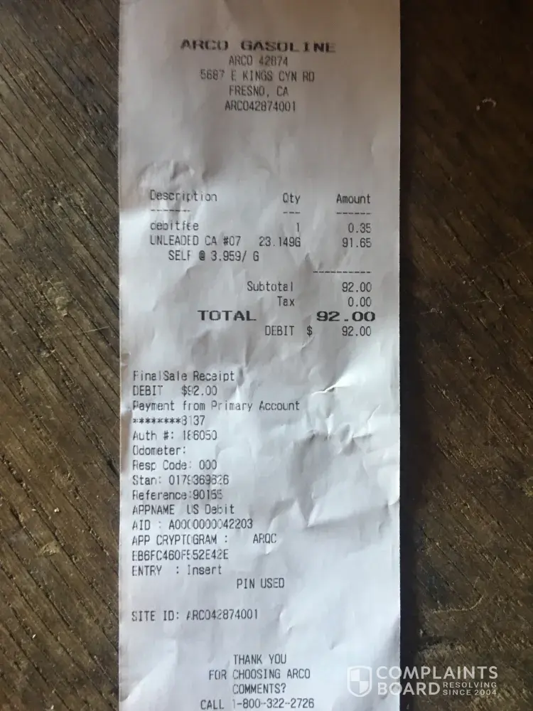 In April I visited an ARCO AM/PM. I was double charged for a single transaction.