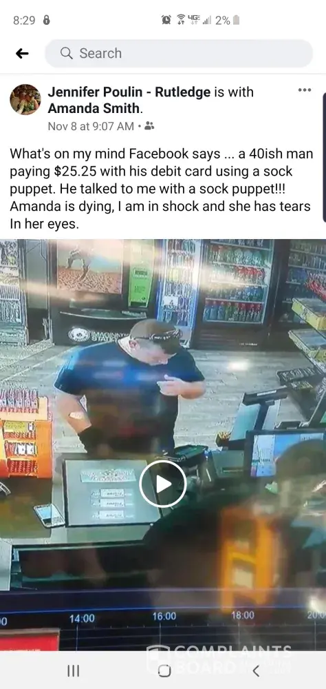 One of my family members saw her post of one of our mentally I'll family members that's he posted on facebook. She took a video of him off the security footage and subjected him to be made fun of. This is completely disgusting. Her coworker Amanda was mocking other white tried to defend him. DISGUSTING and possibly against the law to record security footage and post on a public forum.