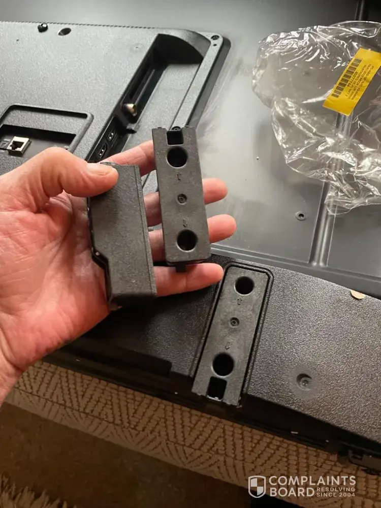 On opening the box and unpacking the television we noticed that one of the brackets which holds the base stand was already screwed in.