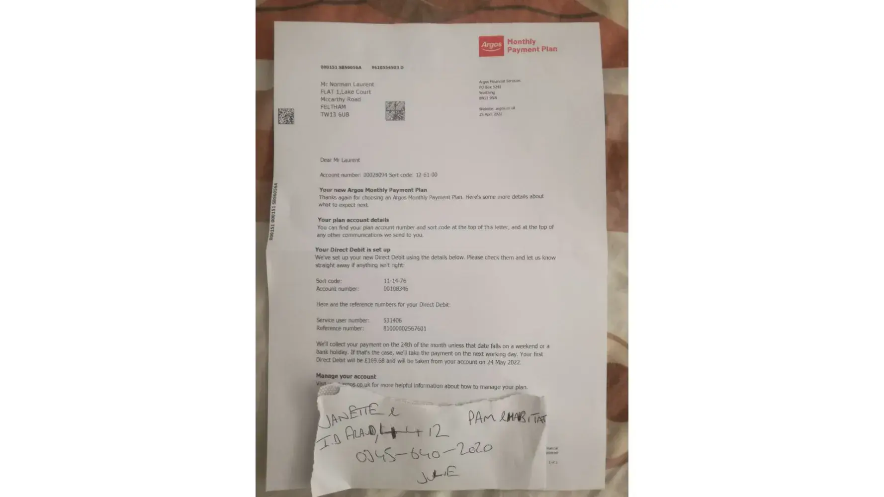 The first payment for the loan was due on 24th May 2022 but failed of course as the bank details for payment are not mine.