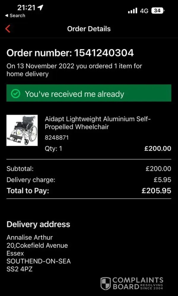 I hope this gets sorted after being pushed pillar to post with Argos doing absolutely nothing.