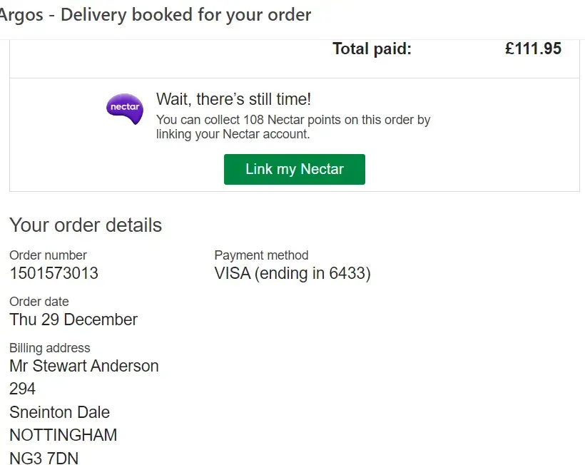 Quite frankly I am disgusted, and have made notes to discontinue using Argos for any further purchases.