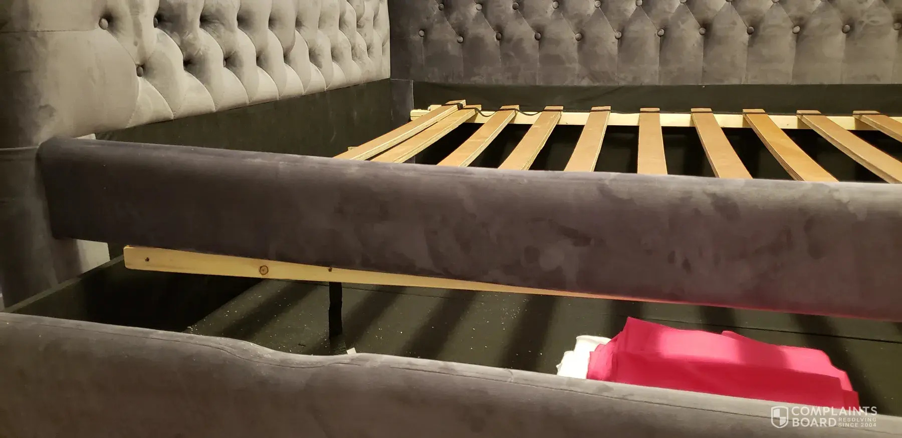 I am very unhappy with the quality of product that we purchased from your company on 9/17/17. The rails that hold the mattress and box spring up are splitting.