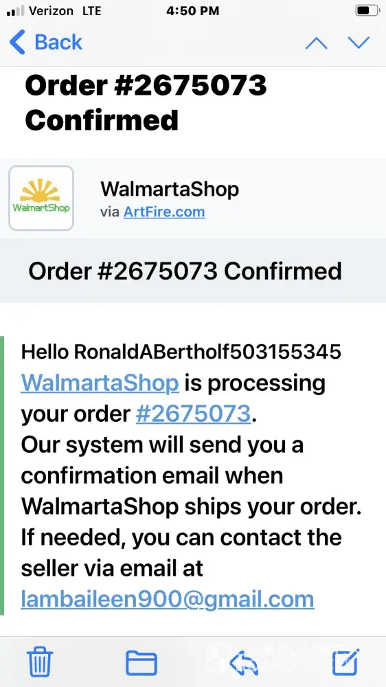 I purchased a washer dryer combination threw Artfire from [protected]@163.com. And have not received any kind of correspondance I have received 1 initial email Giving me a confirmation number this is how the email was received: