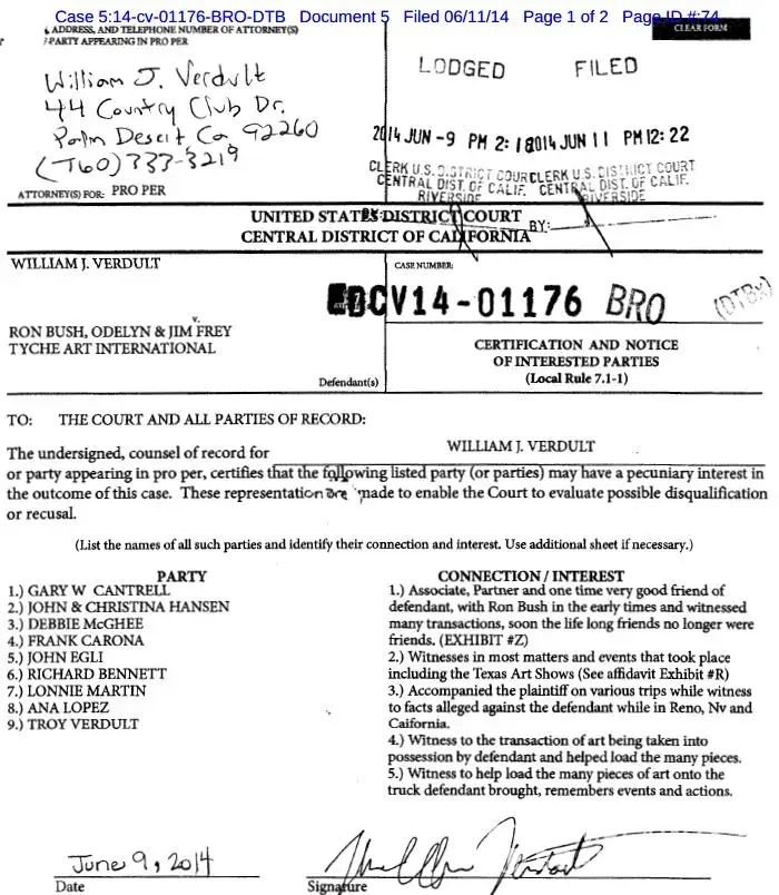 WIlliam J Verdult v Ron Bush case: "Cantrell is associate, partner and good friend"