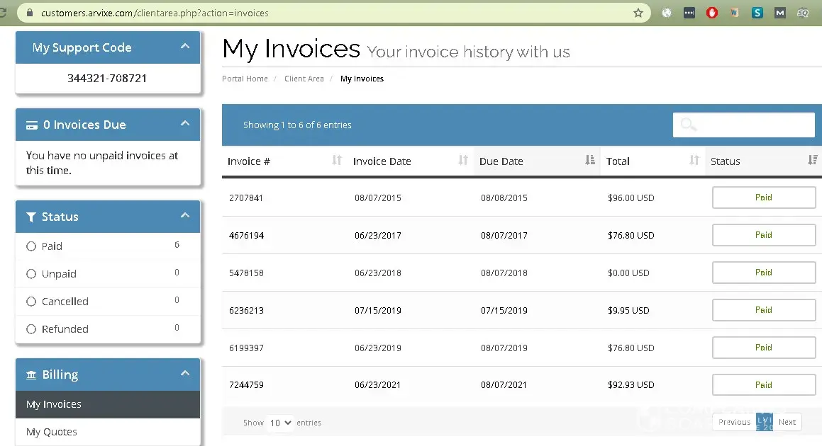 In 2020, i have a client stopped their service hosted on Arvixe. I didn't perform a cancellation request right away through Arvixe customer portal due to :