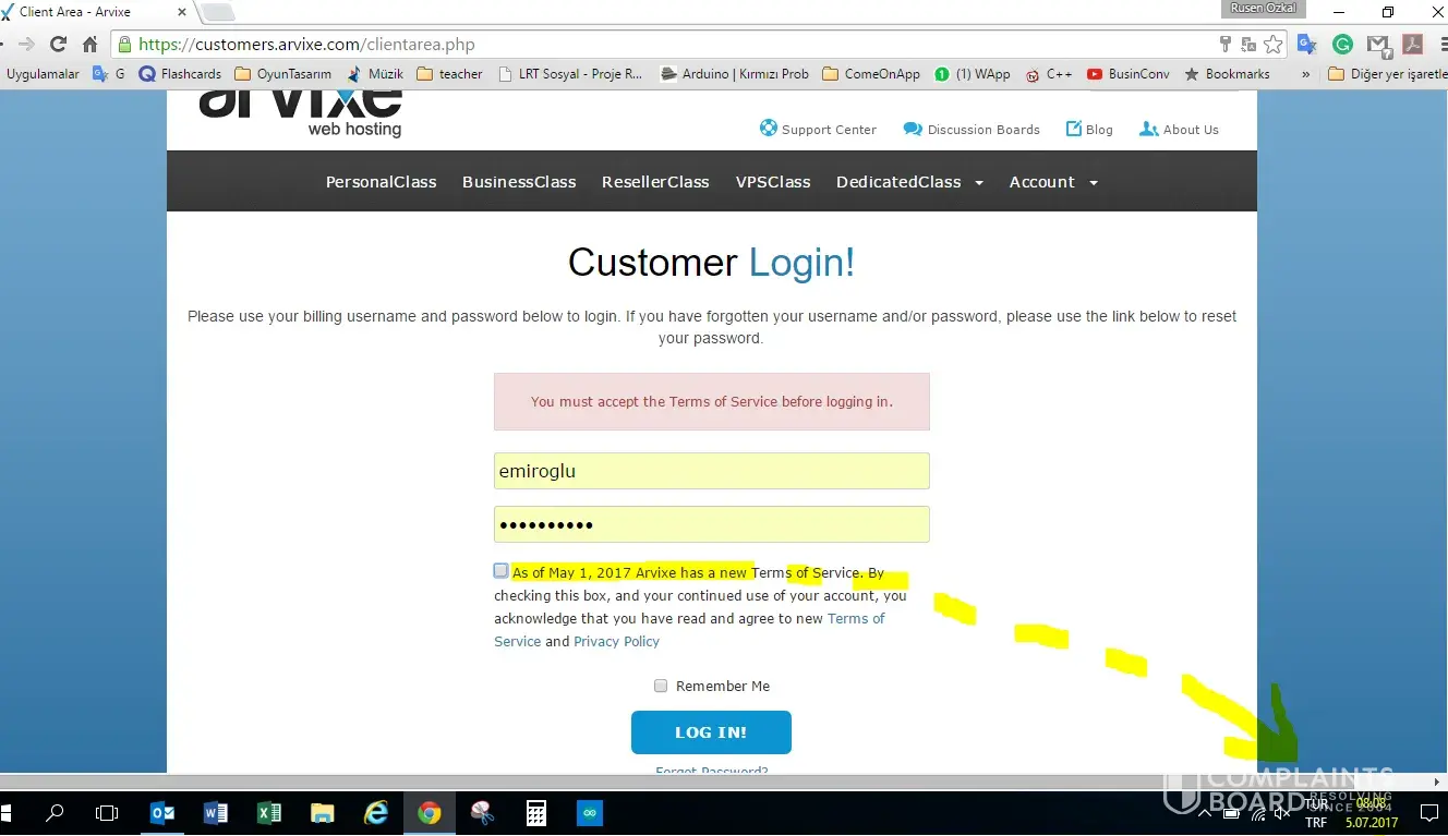 They also changed the user agreement on May 1, 2017. Out of my knowledge and approval. You can see when enter login page. I have never enter arvixe.com for mounts because of the constantly problematic systems. There are several unsolved my support tickets and e-mails.