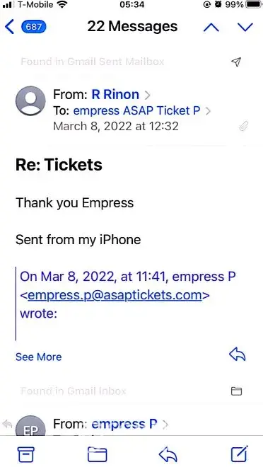 On 3/15/22, I started getting offers from AsapTickets agent: Stojan E.