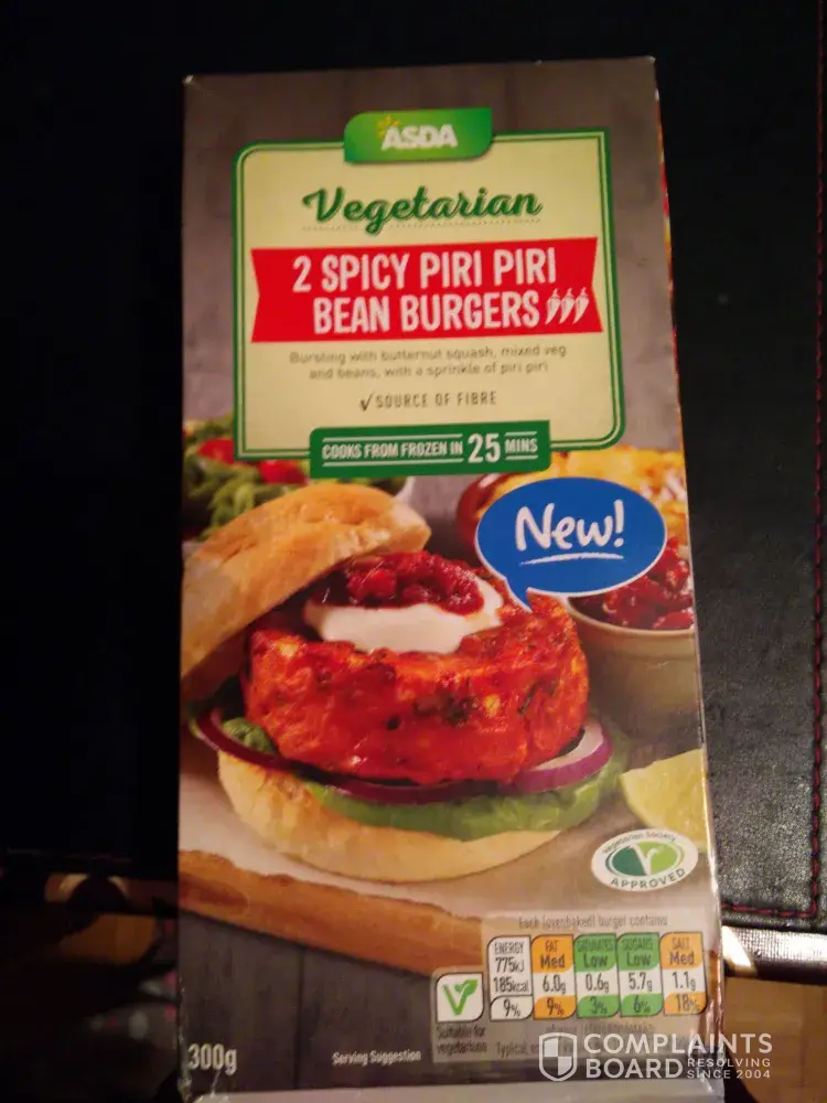 a piece of paper found embedded in one of asda's spicy piri piri bean burgers
