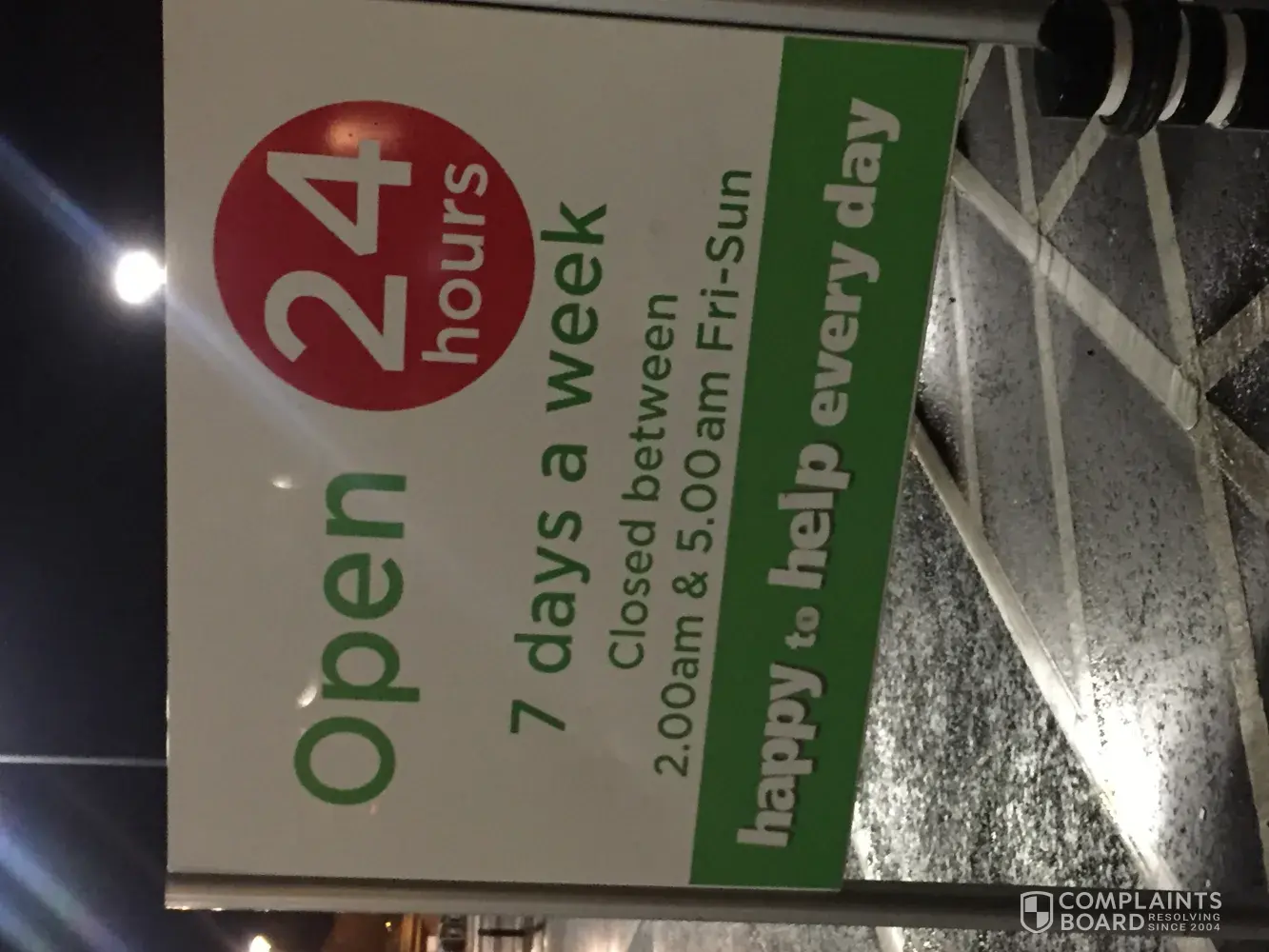 Now correct me if I am wrong but this is clearly not 24/7 ? And is extremely misleading as it's advertised as open all day all night !