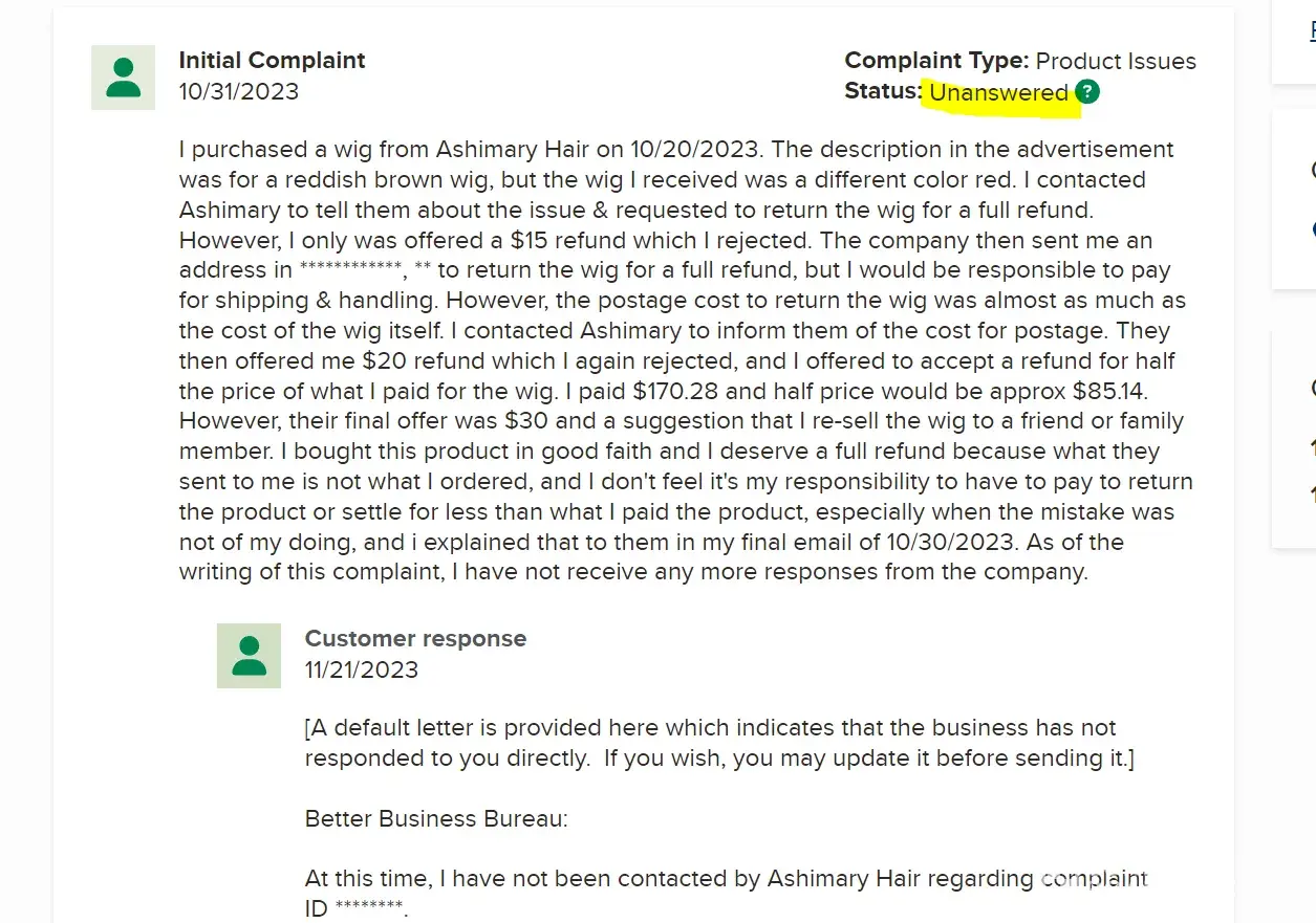 I bought this wig because of an ad that I saw on Instagram. In the ad, the hair was beautiful and thick. What I received was far from that. It looked as if a child put this together. One side of the hair was longer than the other. The hair was very thin. And the top was sewn together instead of it being put on a lace so you could see the threading from the top. I reached out to the company for full refund because per their return policy if the hair is defective, you can return and get your money back. The company asked me to keep the wig and they would give me $15. I almost paid $200 for this wig so no thank you I do not want a bad free wig. I want my money back per your return policy.