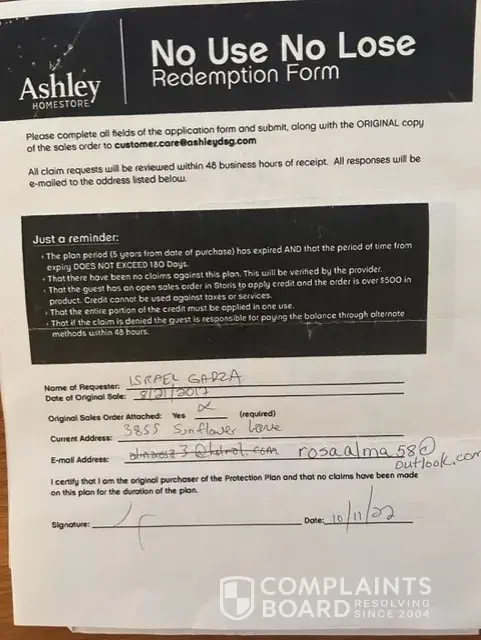 Ashley is the worst furniture company. There service is 3rd class and about there employees what to say after selling the furniture they will not listen anything about your furniture. Store managers are fooling people like us. Every single time we have to explain each and everything to a new person. From last six months we are trying hard to replace our bed. We have all the proofs about our filing the complaint but no one is listening. I will strongly suggest that not to buy furniture from here. Otherwise maybe you will have to face the that we are going through. I am mentally harassed by the whole staff.