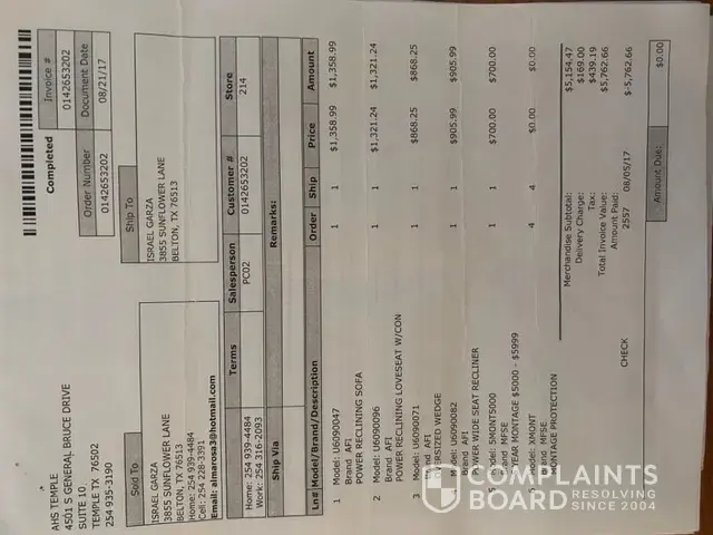 Ashley Furniture has left a very bad taste in my mouth, I will not recommend your store, and I will post on every website to make other consumers aware of the scam that Ashley Furniture is engaging in to fraud, consumers.