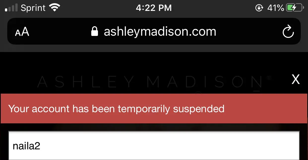 The Ashley Madison site yâ€temporarily suspended my accountâ€....why