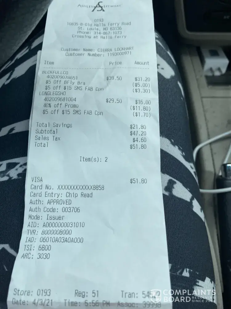 70 Ashley Stewart Complaints