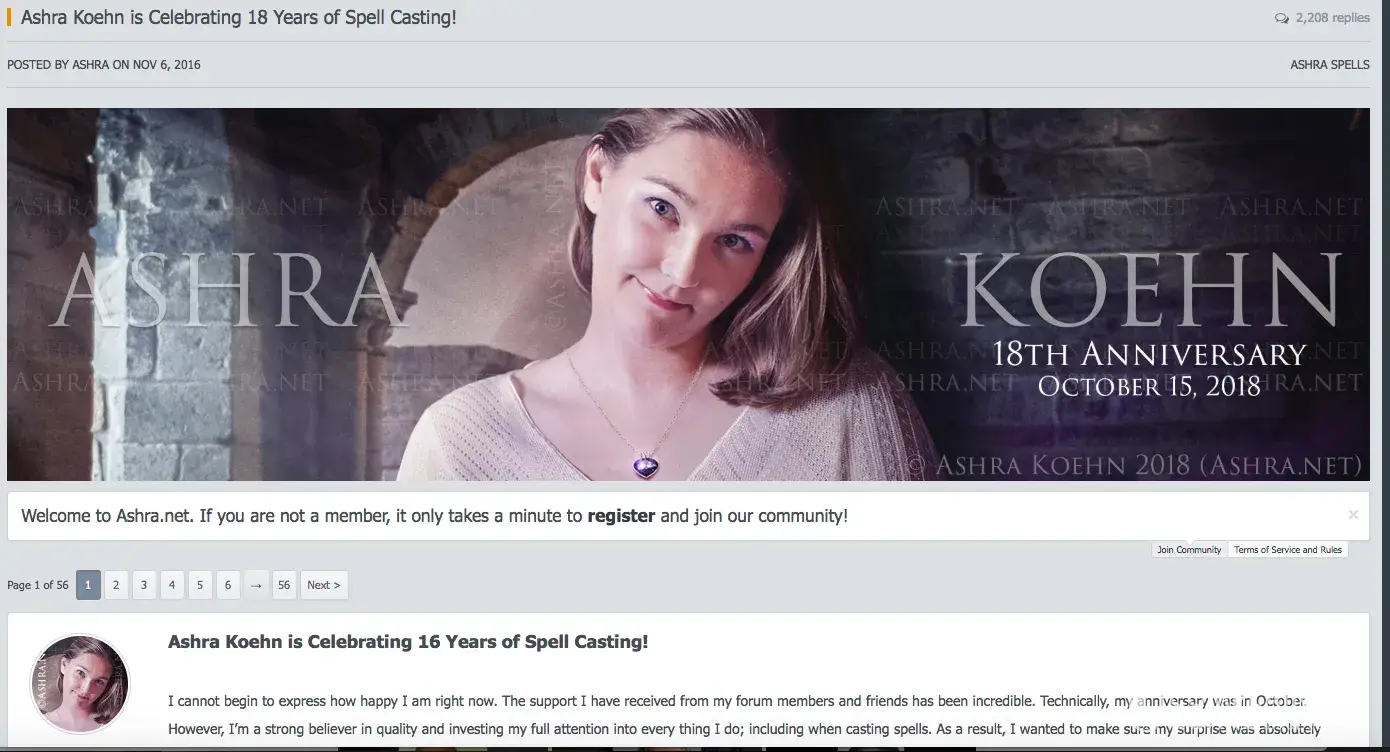 On her website, the main one, Ashra.net, almost everyone on there, she has created the name on the forum basically having conversations with herself, to prove she is real.