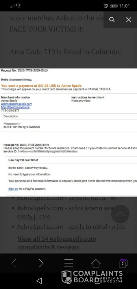 Now she or a "client" (which is always her by the way using another name) will find this comment and either say that this is a lie of an "Ashra impersonator" the problem is all of these "impersonators" use the same exact paypal address as hers which only she has access to! So this is another of her excuses to get away with being a fraud.