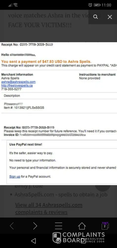 Remember: Ashra is good at scamming - so don't fall for that she is ‘nice' (and she plays that ‘I am nice' to you so you will purchase the fake spells. She will say there are many positive reviews, which there are ONLY on her forum and Trustpilot, where she writes most ofthem herself)