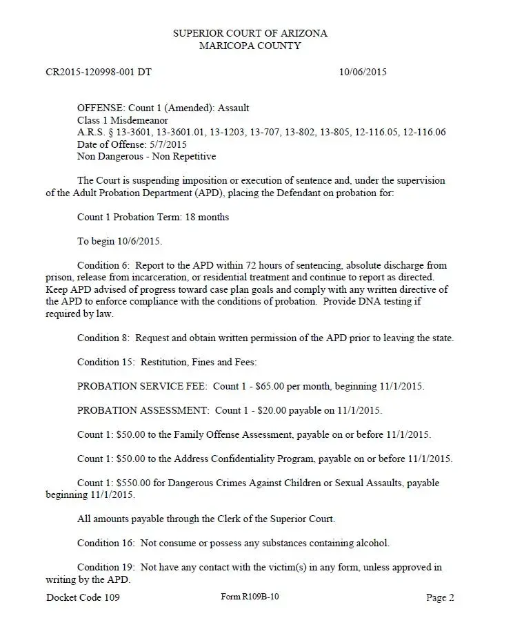 Attached are the court order and terms under which this criminal was allowed to walk free.