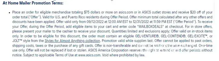 Called back spoke to Jacob who after I explained everything he understood that I met the qualifying purchase amount and I actually did order one of the necessary items. He was able to get a supervisor. Lindsey did not understand the terms that her company used should have qualified me for the discount. I asked to speak to her supervisor. She had another supervisor that was her equal but no one was higher than her. I then spoke to Nicole. Nicole insulted me, argued with me and refused to credit my account for the $20. I told her that she needed to cancel my order and that ASICS was losing me as a customer. She said she couldn't do that even though the item was not shipped. In addition, Nicole is the highest customer service manger at ASICS. She needs to be either fired or retrained. She didn't even want to keep me as a customer and did not seem to mind that I was going to post to social media. She actually told me she felt sorry for how I felt. She argued with me, insulted me and disconnected the call. Sorry ASICS - you lost a customer and I plan on telling everyone not to shop at ASICS.