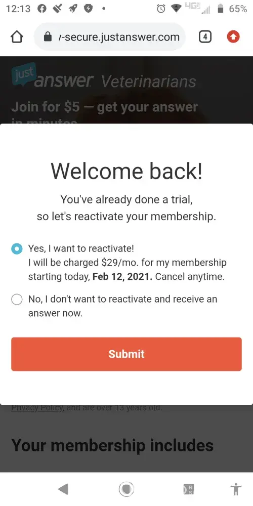 I found website just browsing and signed up for a free 48 hr trail paid 5 dollars. I only needed one question answered. Today I'm trying to cancel but before cancelling I asked one of the people how I cancel my membership. Now everytime I try to log in its telling me email not found or wrong password. I know my password is correct because I use the same one for every account I have just so I won't forget it. So I'm guessing that's how they get ppl to pay the whole month. Don't give them access to their account until after the free 48 hours has past. If you don't cancel by then you get charged. What is even worse is after I asked my first question the first response was fine then I received a message that they like to talk to customers personally over the phone for 26 dollars which is fine. But there are people you can call for free of charge. So this is my complaint I'm not sure if I'm being a bit paranoid but something does not feel right about this.