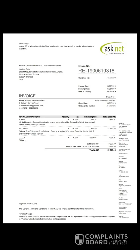I have ordered a usb elicenser from steinberg shop on 31st of may... I got a mail on 6th of june that my product has been shipped to dhl with tracking id.. I have been tracking my product but no status update from 6th... I am very worried about my product and I am very disappointed... I have mailed and also registered a ticket but no response..
