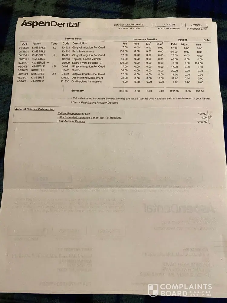 I paid their price of 7, 738.60 dollars for 20 extractions, temporary dentures, and permanent dentures on 7-17-21. They extracted the teeth. They made dentures that didn't fit, hurt my mouth. I could never use them. 2 months later they installed a liner that ruined them permanently, because then there was a gap of eighth inch in front and they did not stay in place any way. The last appointment they made Matthew (no name) he refused to give his last name, came in and yelled at me saying he would not fix or replace them or refund my money for them or the permanent ones in 3 more months that I already paid for. Then yells get out I'm calling the police 5x. I left. He also stole my 20 teeth and 2 bridges i told him to save for me. This is Aspen dental of Grants pass, Oregon. It will cost me 5, 000 dollars to get them now from a professional office, the temporary and permanent. I have been 3 months with no teeth and it looks like it will be 6 months till I do. He is a theft, and a fraud . I'm going to a oral surgeon to repair the broken bones and protruding bones in my mouth in 7 weeks. Also he cut a 2 inch slice down my gum which was ridiculous. Took 16 days and 3 antibiotics to stop the infection. 3 months after the incision it is still not closed. Can you please help me get my 5, 000 dollars back from him, or something ?