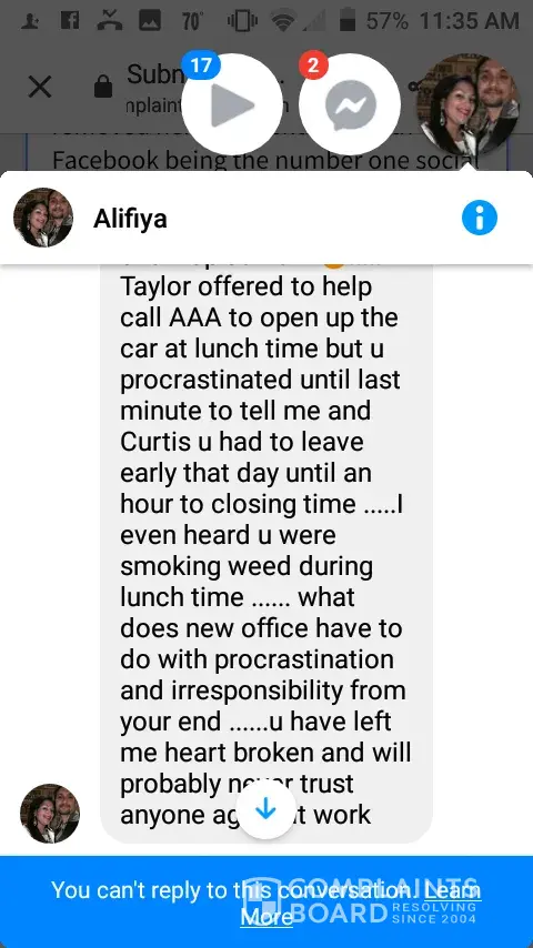 Read full complaintOffice manager, customer y