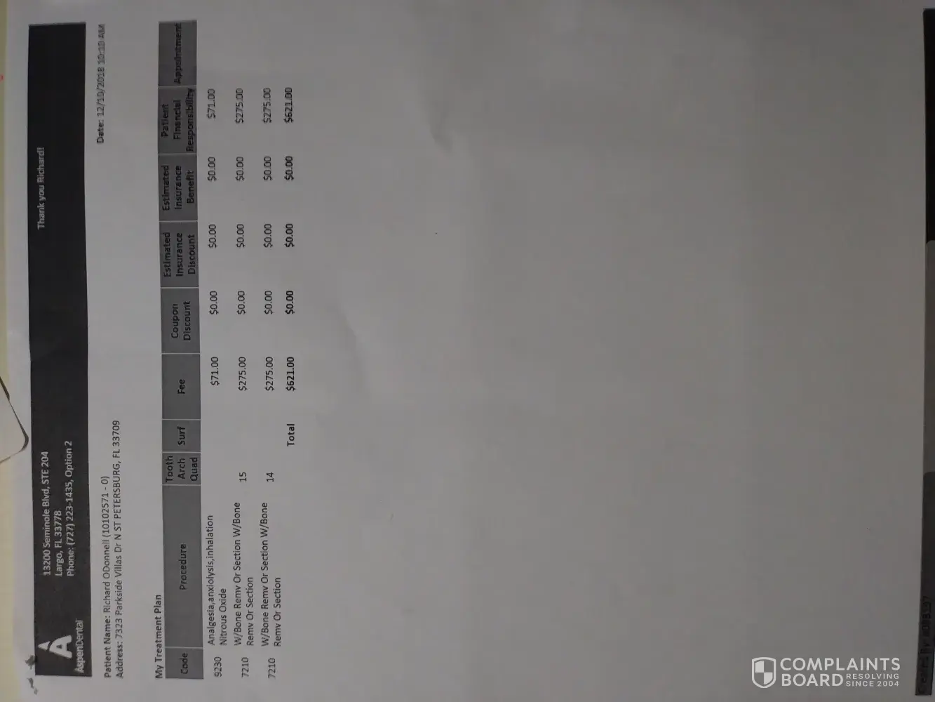 Weeks later, I received a bill from Aspen Dental for $700.00. Aspen told me that my