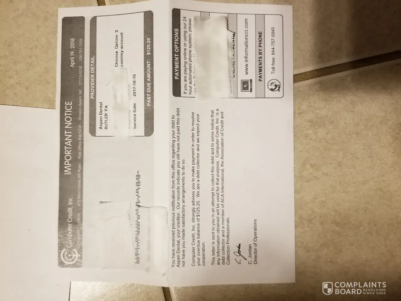 In Jan of. 2018 I got a bill from aspen debtal saying