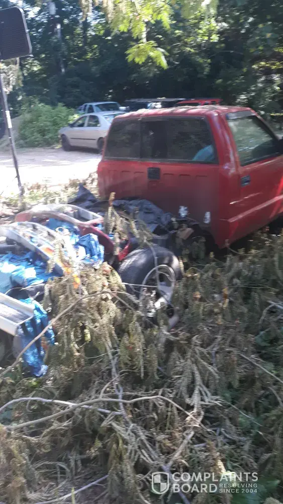 I have my vehical at a mechanic's garage I'm China grove north Carolina. Asplunde was doing tree trimming on my mechanics power lines and they dropped limbs and debris on my truck. And left debris all over my mechanics yard . I want to know why my truck has debris all over it and what can we do to solve the issues at hand. I have photos of my truck and all the debris