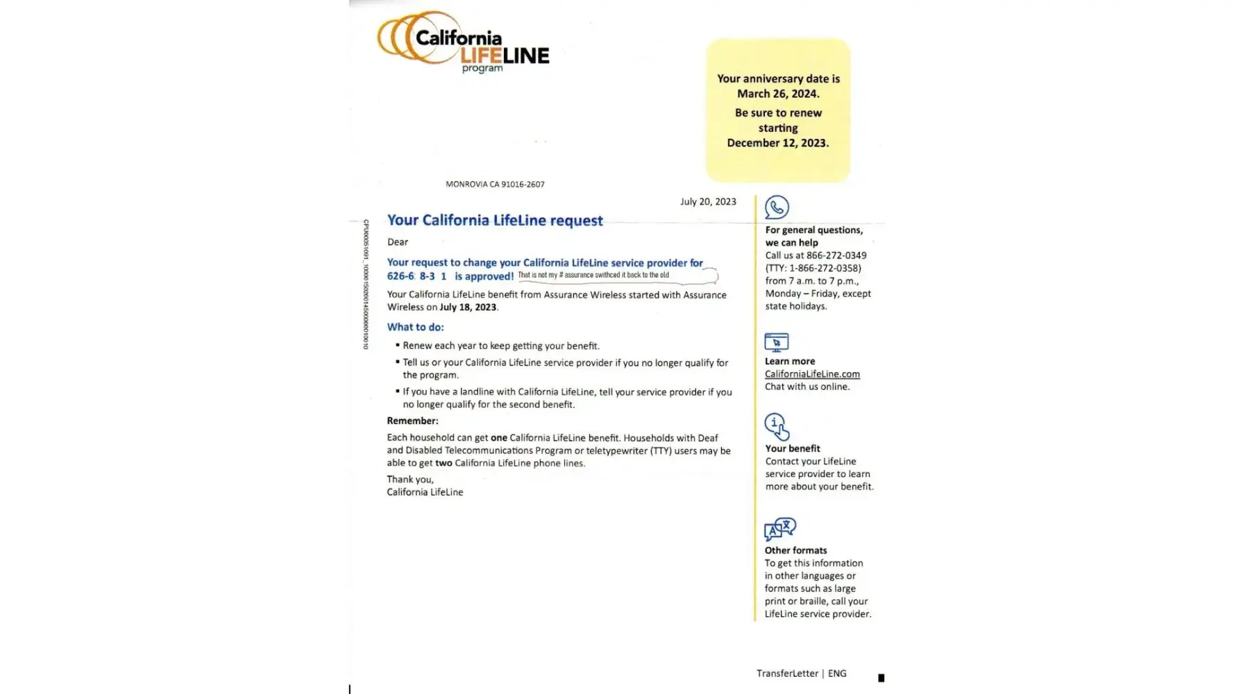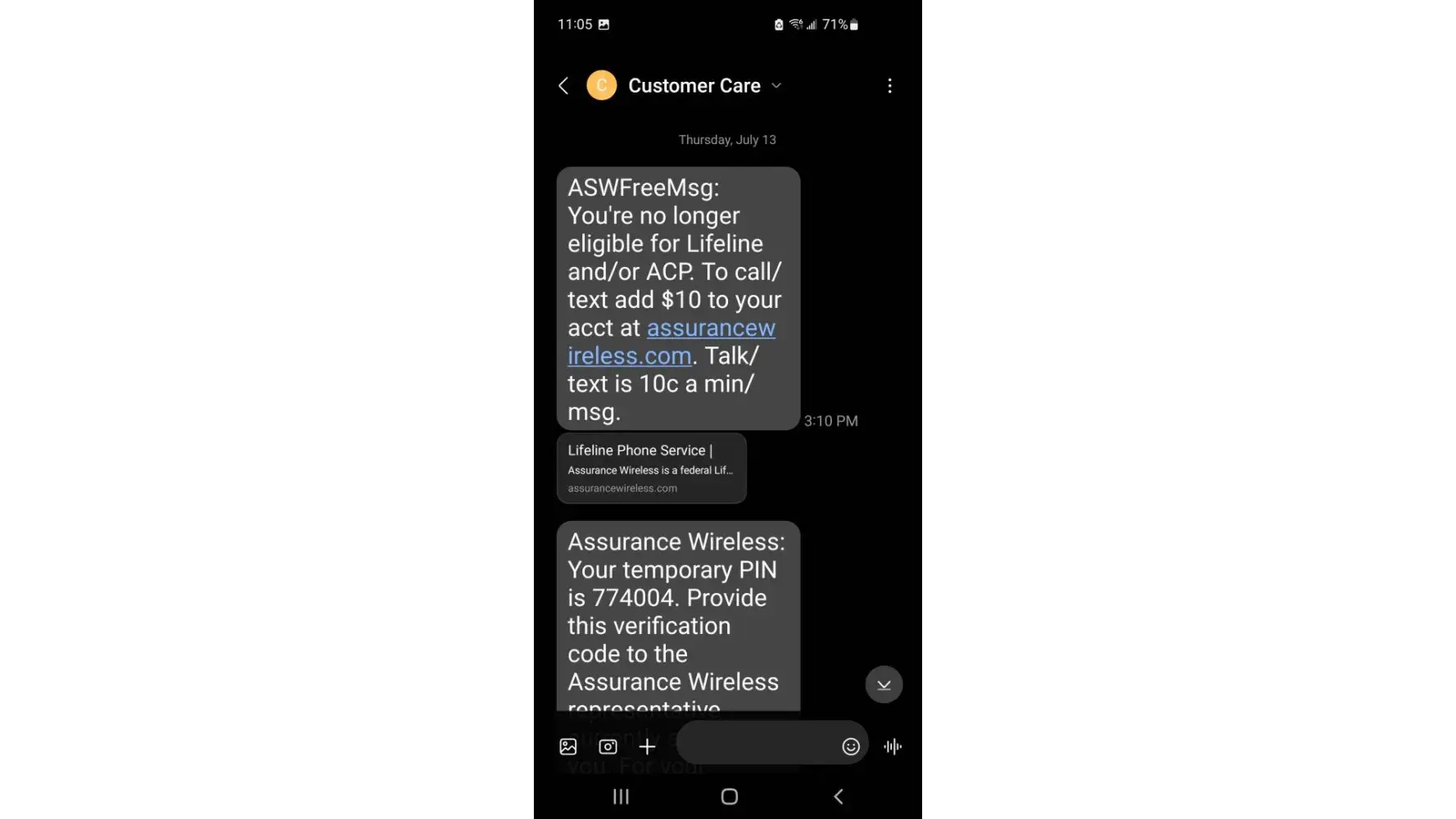 Assurance deleted my account claiming my lifeline expired. I never got any notices to renew, the reason I didn't get any was it didn't expire, they just claimed it did. I confirmed this with the lifeline program. My lifeline expires in march 2024 not in july. 2023 They told me I had to take a new phone which was junk and a new phone number. I was able to get them to give me back my old number then they told me they couldn't switch my phone back to my good samsung but I found a way to do it online myself. They also stole my ACP program from my internet company a term called slamming I believe. They never corrected my phone number with the people at lifeline so lifeline thinks I have a different number. The customer service is the worst I've ever seen. I'm am elderly with bad eyesight I can't use a small device to do my business on the internet Do not use this company!