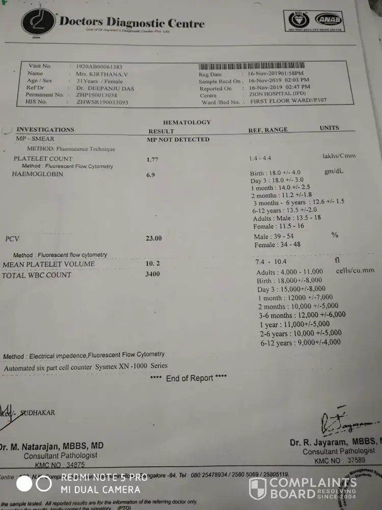 Read full complaintIncorrect blood test report provided to fleece money and asked for icu admission