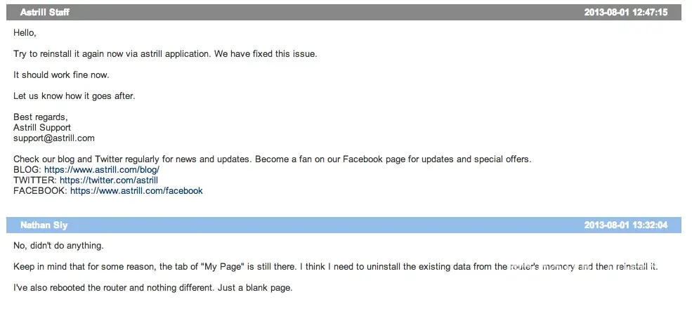 I have been using Astrill VPN for a while without any problem and never had to contact their customer service. But the application suddenly stopped working after an upgrade. I asked for support. All I got was to download and re-install. I did that but that didn't resolve the issue. I tried contacting them again several times and no reply. They just ignored me. I tried to call, no answer. I tried online chat, no one is there. Email, no reply.