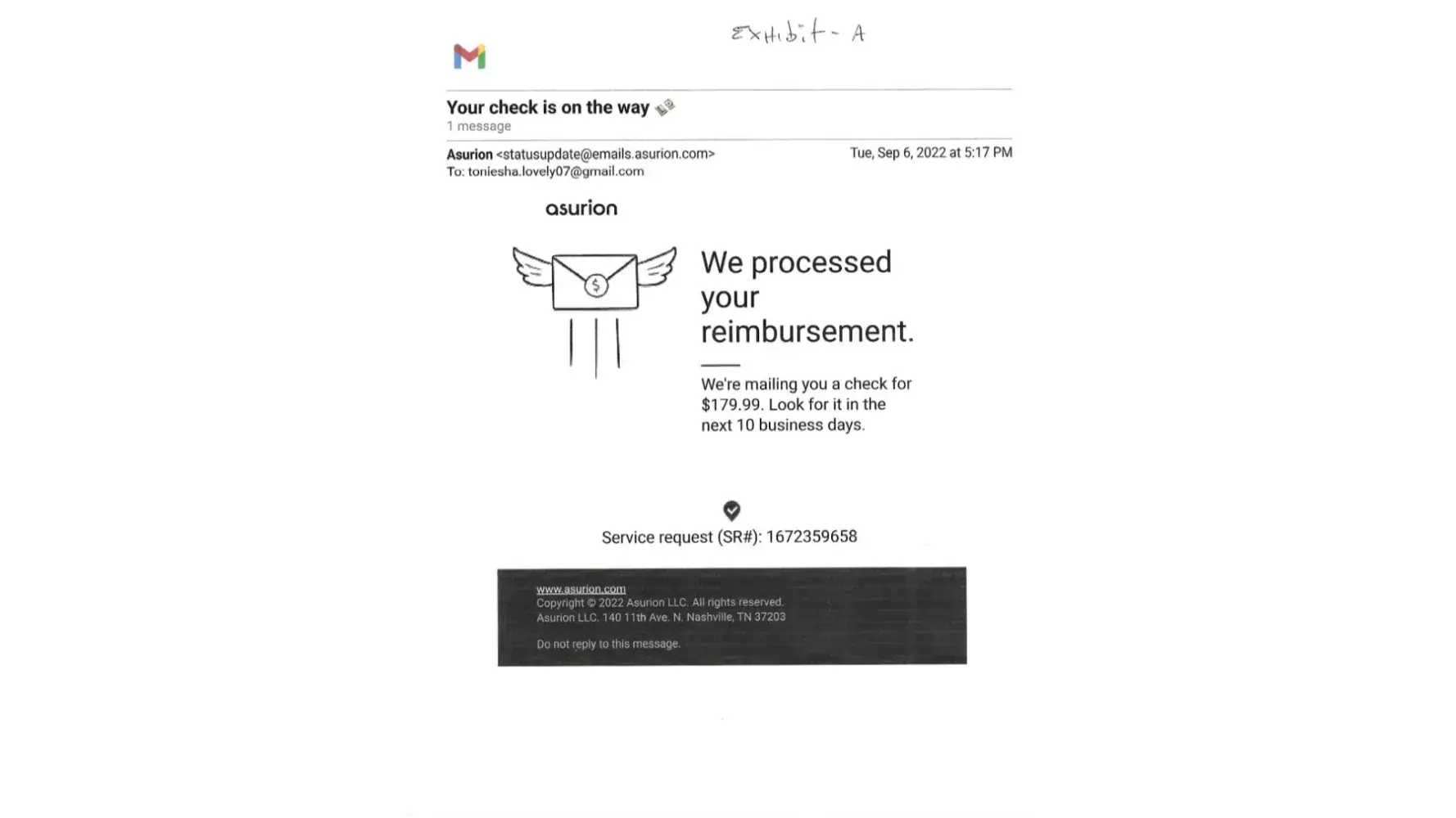 After I returned a broken DeLonghi espresso coffee machine pursuant to my Asurion protection plan I never received my refund for $179.99. After Asurion received the broken DeLonghi expresso coffee machine from me through a UPS return from me I was then sent two emails from Asurion one on Tuesday, September 6th, 2022 at 5:17 p.m. and a second email on Thursday, September 29th at 12:02 a.m. Asurion is lying to me regarding sending me a refund check for $179.99 that they were supposed to be having delivered to me because I never received the initial check or the second check promised to me. I spoke to an Asurion agent named Ms. Lady on October 6, 2022, who promised I would receive a refund in the mail for $179.99 no later than October the 12th, 2022 to no avail. I've enclosed 9 pages and one audio recording of documentary evidence regarding the consumer fraud towards me. The phone number that I called to inquire about my Asurion service request and refund is: [protected] and my service request number is (Sr#) [protected]. The Asurion Corporate Office Headquarters address is 648 Grassmere Park Nashville Tennessee 37211. The Asurion Headquarters Corporate Office phone number is [protected], [protected], or [protected]. Because Asurion refuses to fulfill their service agreement obligation by giving me my refund of $179.99 this is a breach of contract and I feel consumer fraud.