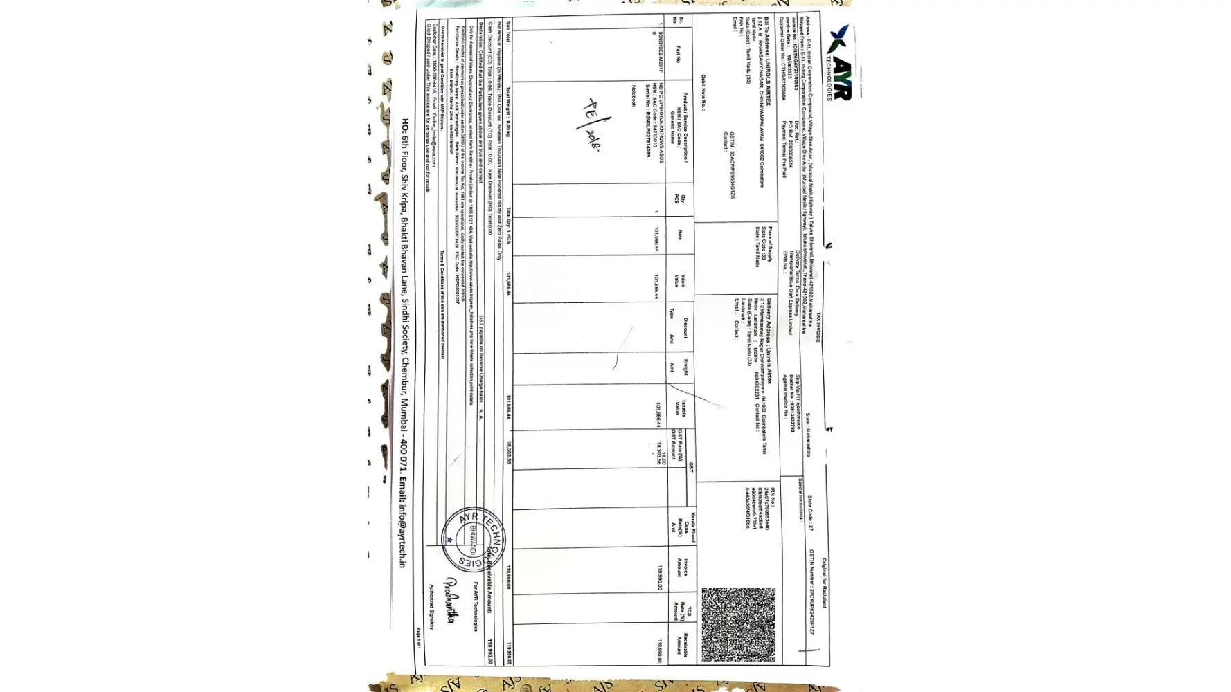 Order # [protected] Dt. 10.08.2023; ASUS Service No=A2308027706-000