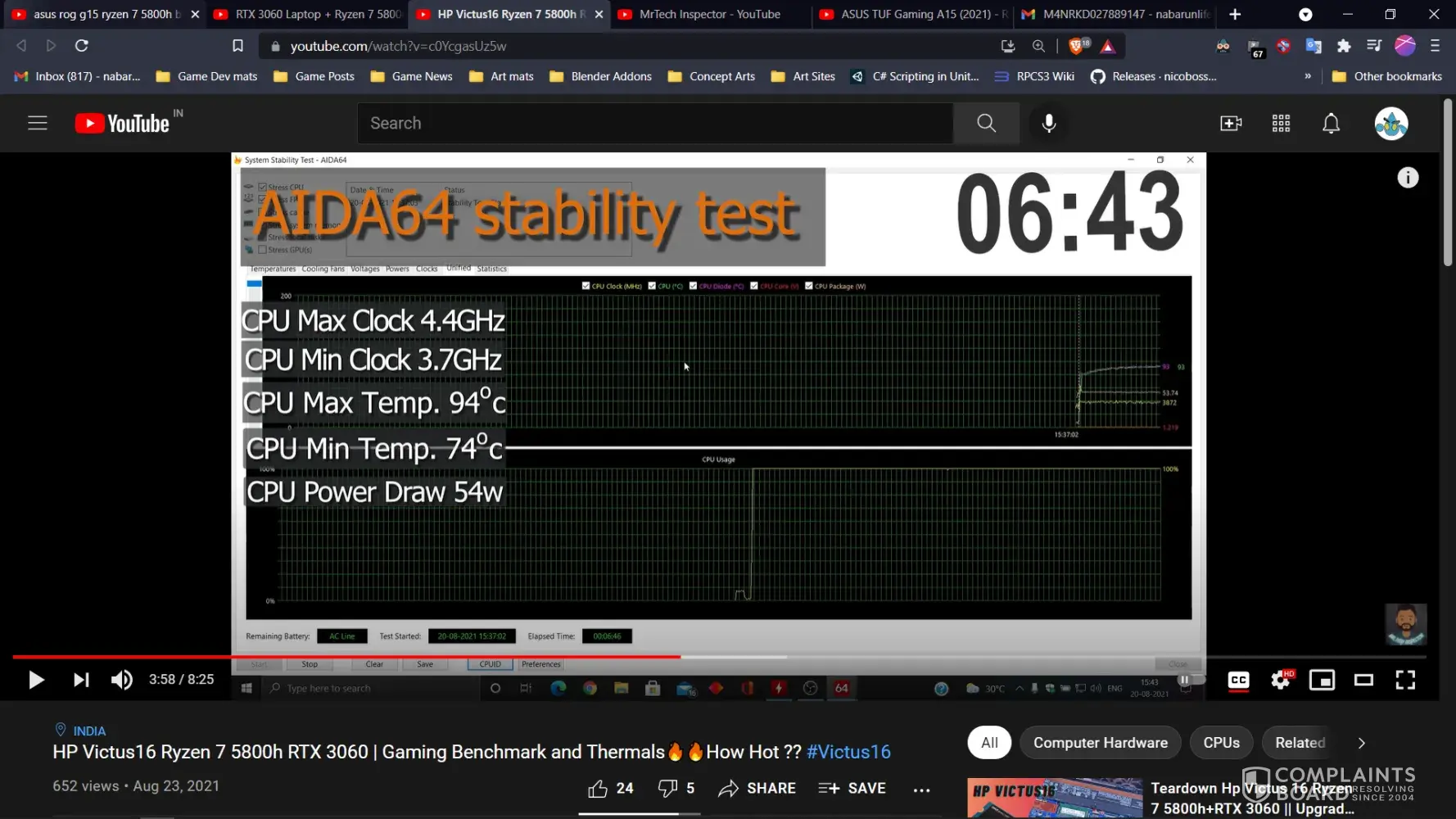 -Also check out this Asus Tuf A15 performance having same CPU Ryzen 5800H and GPU RTX 3060